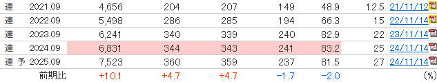 四季報予想では業務拡大もあり、26.9の配当予想は34~36円となっている。